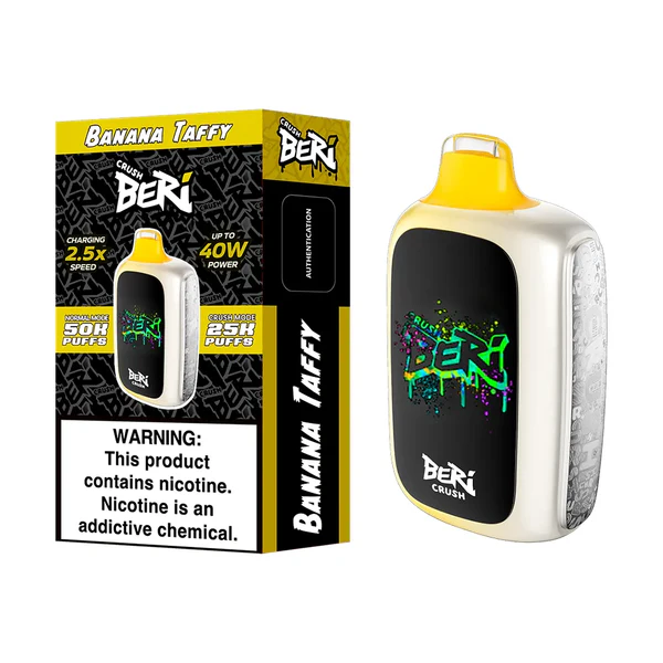 Beri Crush creates dependable disposable vapes. They prioritize great taste, long life, and user-friendly design. The Banana Taffy Beri Crush 50K is a top choice in their range.