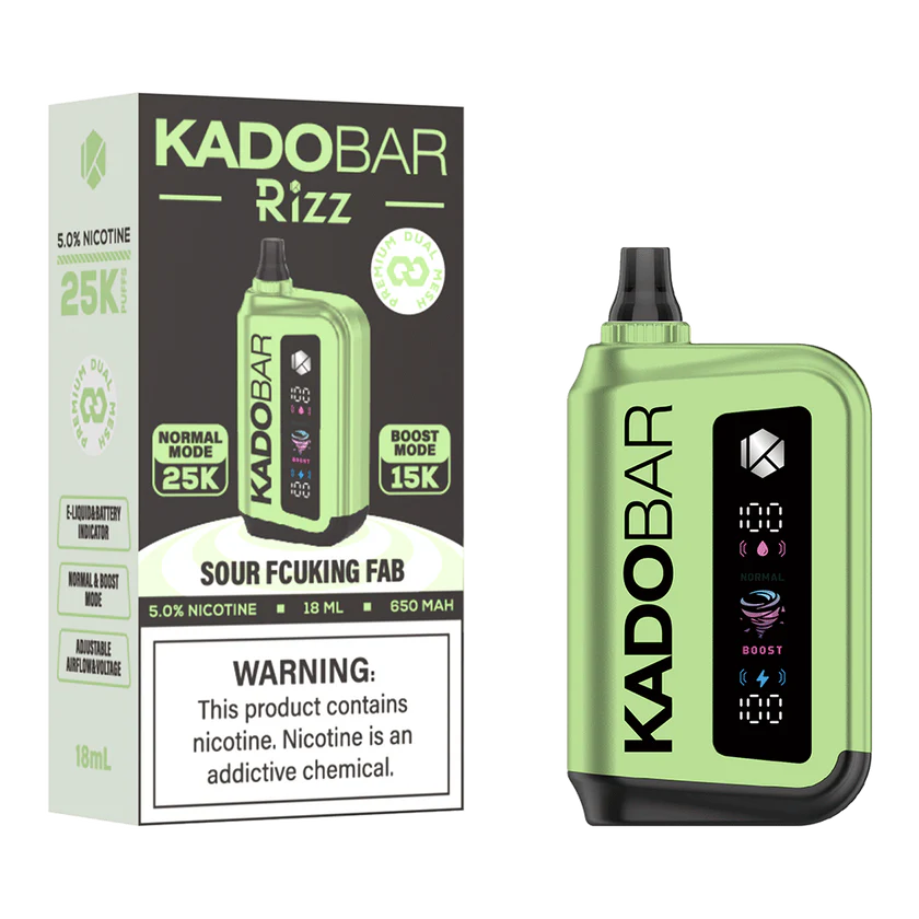 This Kado Bar Rizz Sour Fcuking Fab lasts way longer than most disposables. You can easily reach 25,000 puffs, so one device carries you through weeks even if you hit it hard every day. The 18ml tank holds plenty of juice to support those high numbers. No dry hits when you are right in the middle of something.