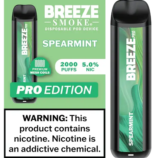 Spearmint – Breeze Pro 2000 Puffs – 5% NIC – Disposable Vape